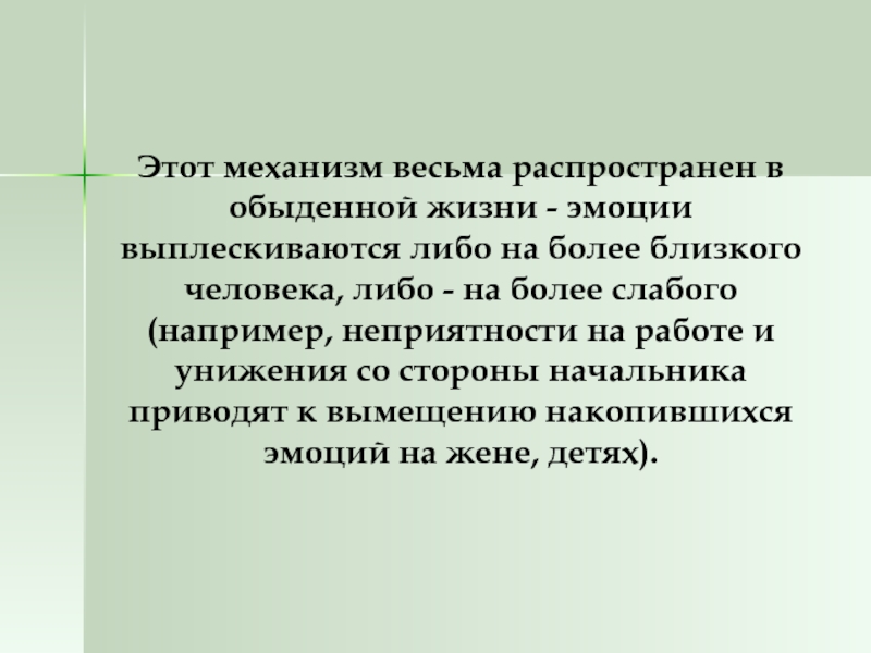 Слайд 132Этот механизм весьма распространен в обыденной жизни - эмоции выплескиваются