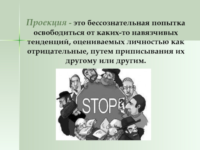 Слайд 126Проекция - это бессознательная попытка освободиться от каких-то навязчивых тенденций,