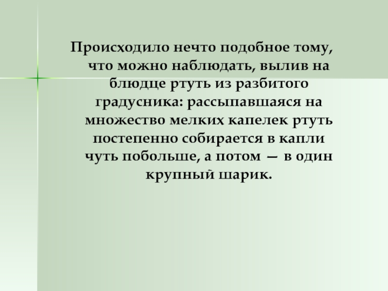 Слайд 10Происходило нечто подобное тому, что можно наблюдать, вылив на блюдце