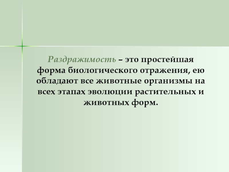 Слайд 31Раздражимость – это простейшая форма биологического отражения, ею обладают все