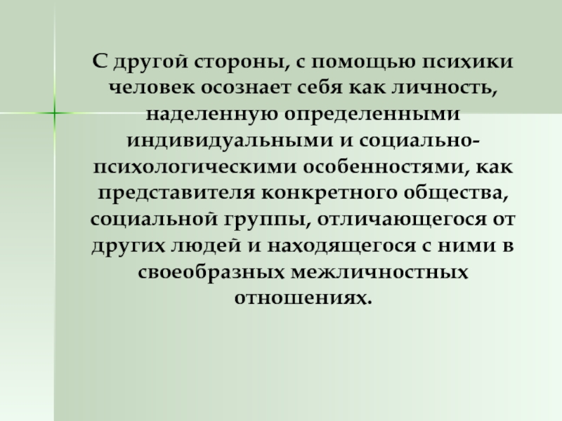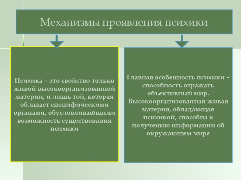 Главная особенность психики – способность отражать объективный мир. Высокоорганизованная живая материя, обладающая психикой, способна к получению информации об окружающем мире