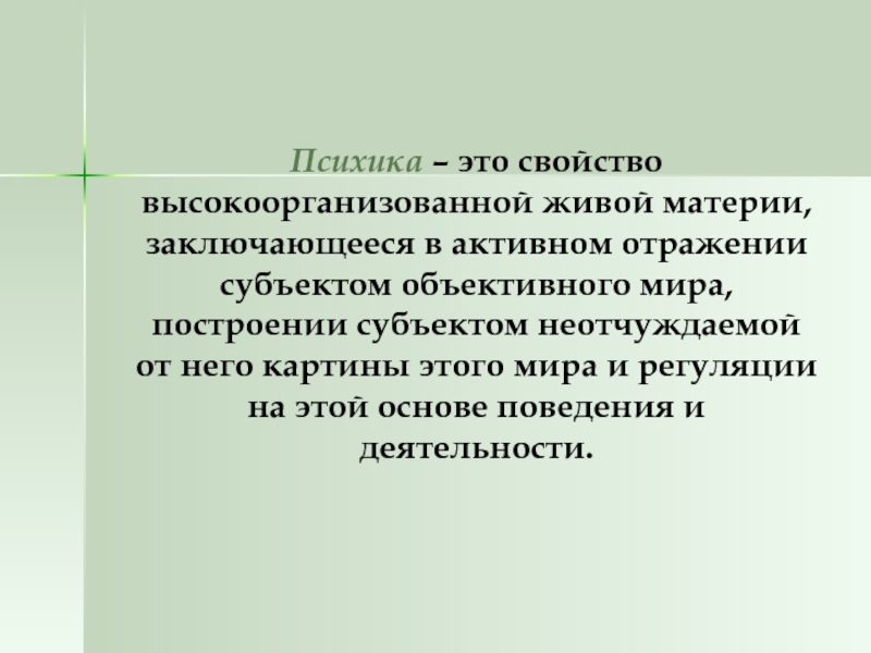 Психика – это свойство высокоорганизованной живой материи, заключающееся в активном