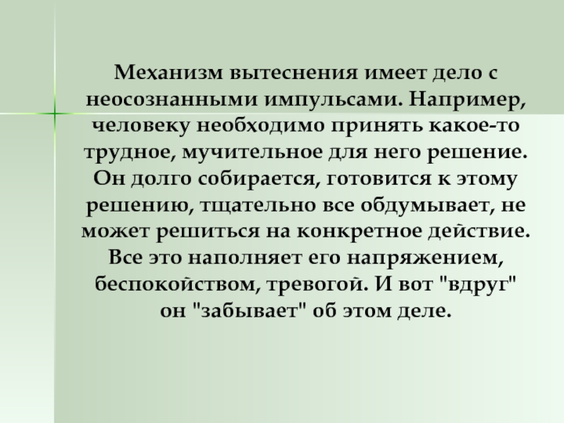 Слайд 124Механизм вытеснения имеет дело с неосознанными импульсами. Например, человеку необходимо