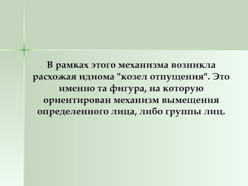 Слайд 133В рамках этого механизма возникла расхожая идиома "козел отпущения". Это