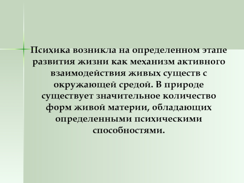 Слайд 29Психика возникла на определенном этапе развития жизни как механизм активного
