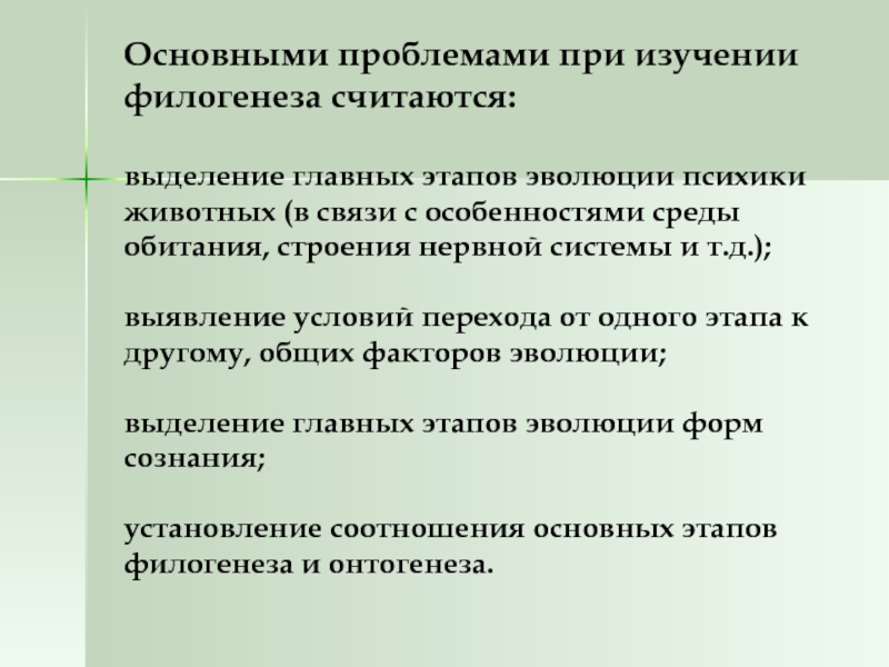 Слайд 17Основными проблемами при изучении филогенеза считаются:
