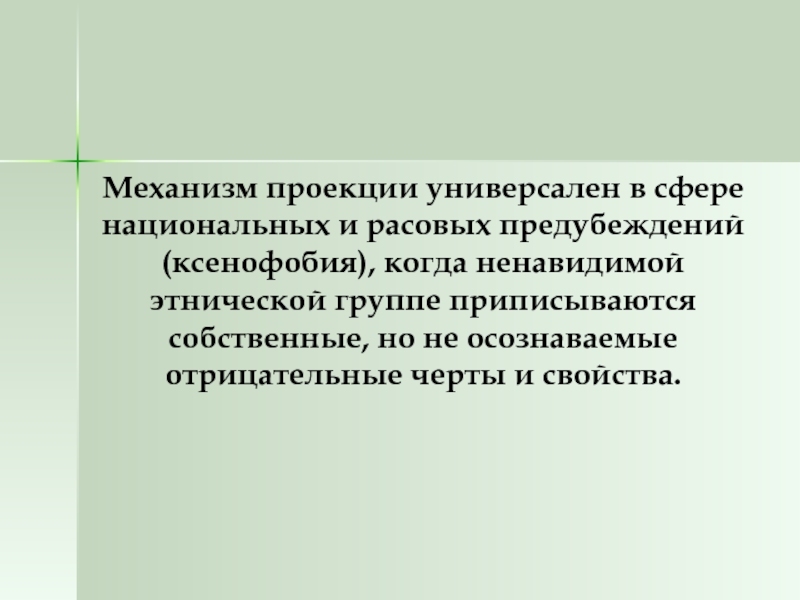 Слайд 129Механизм проекции универсален в сфере национальных и расовых предубеждений (ксенофобия),