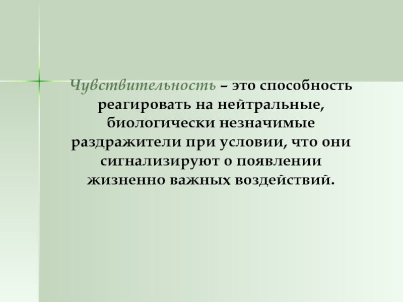 Слайд 38Чувствительность – это способность реагировать на нейтральные, биологически незначимые раздражители