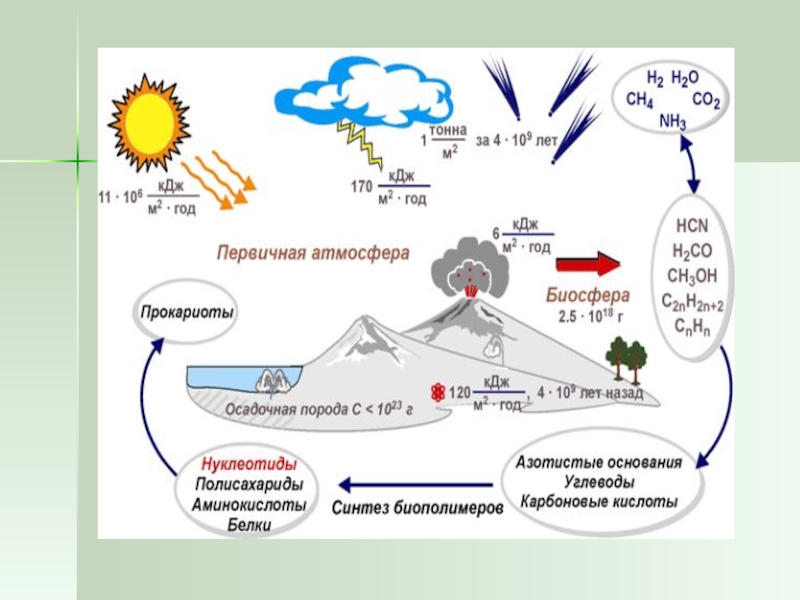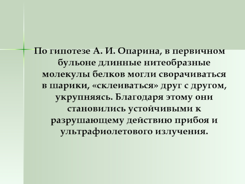 Слайд 9По гипотезе А. И. Опарина, в первичном бульоне длинные нитеобразные