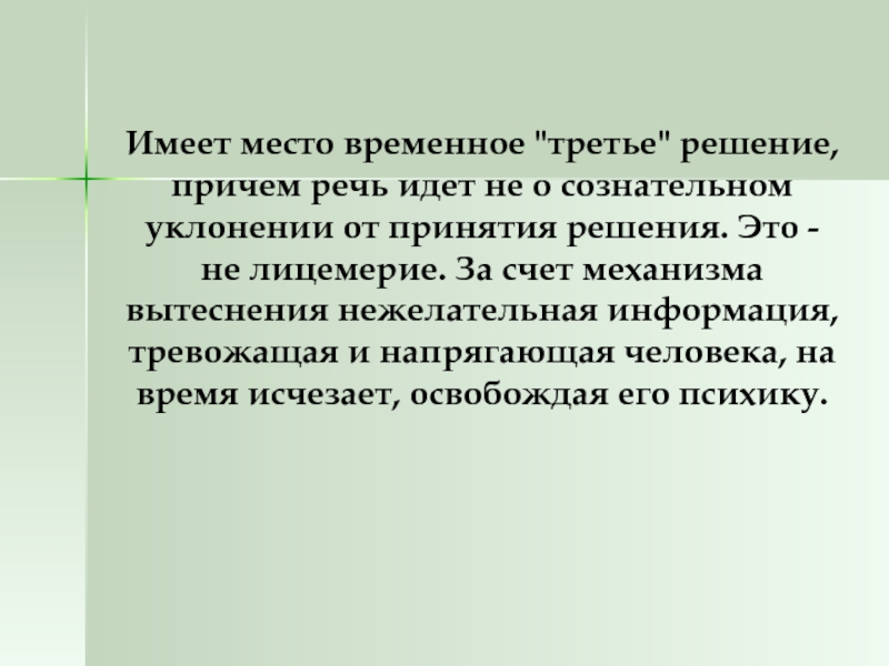 сознательном уклонении от принятия решения. Это - не лицемерие. За