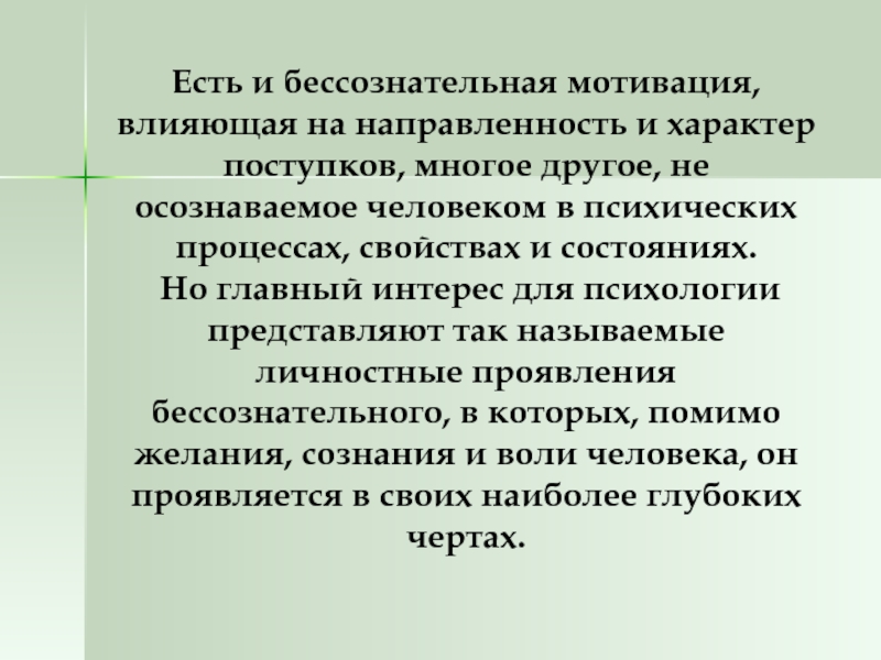 Слайд 106Есть и бессознательная мотивация, влияющая на направленность и характер поступков,