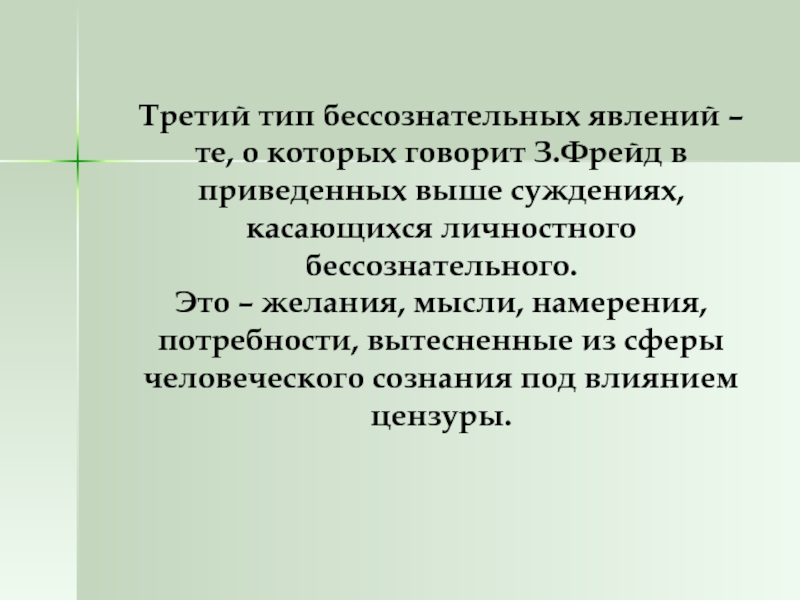 Слайд 117Третий тип бессознательных явлений – те, о которых говорит З.Фрейд