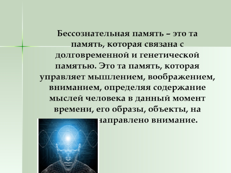 и генетической памятью. Это та память, которая управляет мышлением, воображением,
