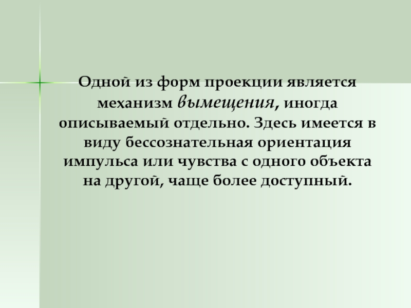 Слайд 131Одной из форм проекции является механизм вымещения, иногда описываемый отдельно.
