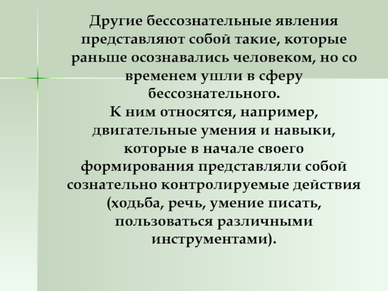 Слайд 116Другие бессознательные явления представляют собой такие, которые раньше осознавались человеком,