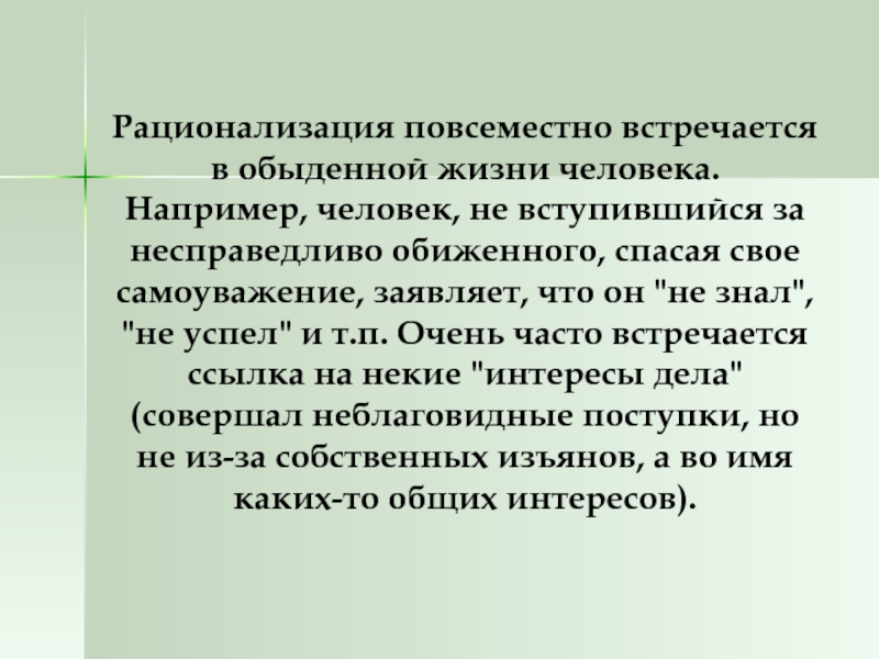 Слайд 135Рационализация повсеместно встречается в обыденной жизни человека.