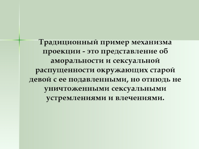 Слайд 127Традиционный пример механизма проекции - это представление об аморальности и