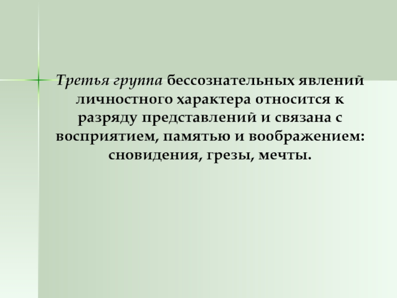 Слайд 110Третья группа бессознательных явлений личностного характера относится к разряду представлений