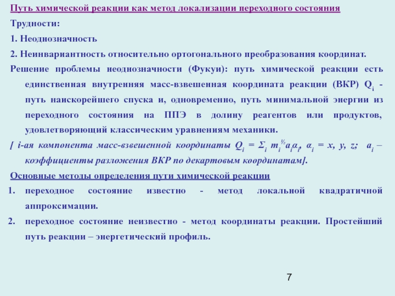 Слайд 7Путь химической реакции как метод локализации переходного состояния