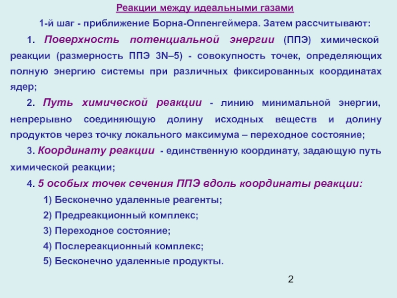 1. Поверхность потенциальной энергии (ППЭ) химической реакции (размерность ППЭ 3N–5)