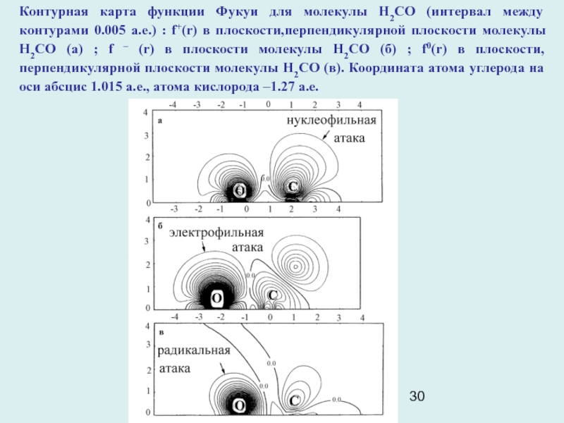 Слайд 30Контурная карта функции Фукуи для молекулы Н2СО (интервал между контурами