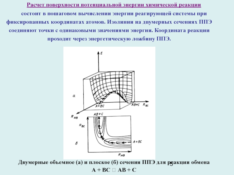 Слайд 5Расчет поверхности потенциальной энергии химической реакции