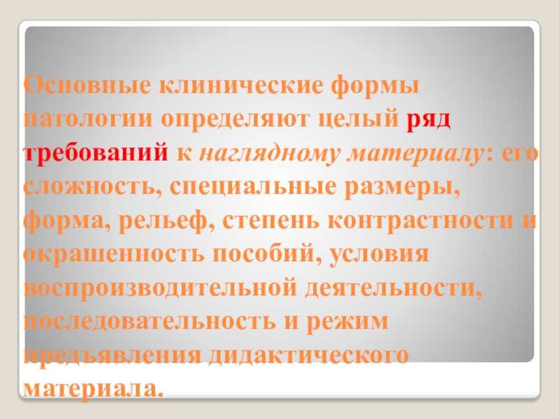 Слайд 6Основные клинические формы патологии определяют целый ряд требований к наглядному