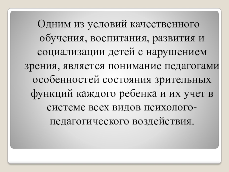 с нарушением зрения, является понимание педагогами особенностей состояния зрительных функций