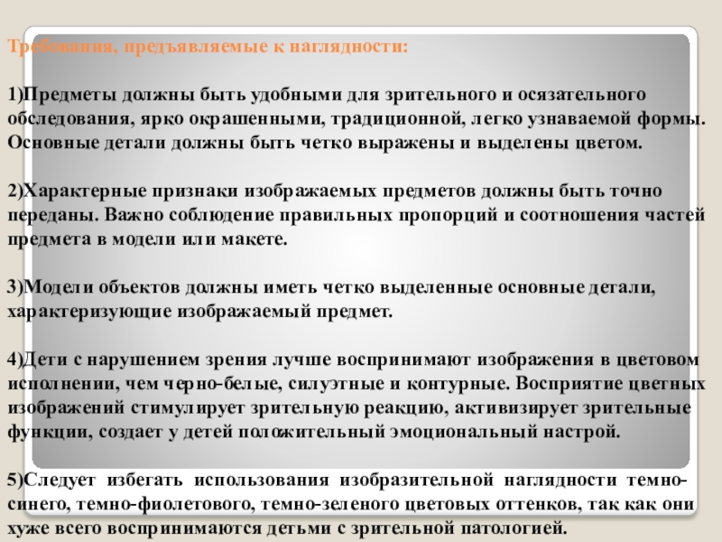 слабовидящих детей необходимо соблюдение определенных требований к наглядным, практическим и словесным методам обучения.