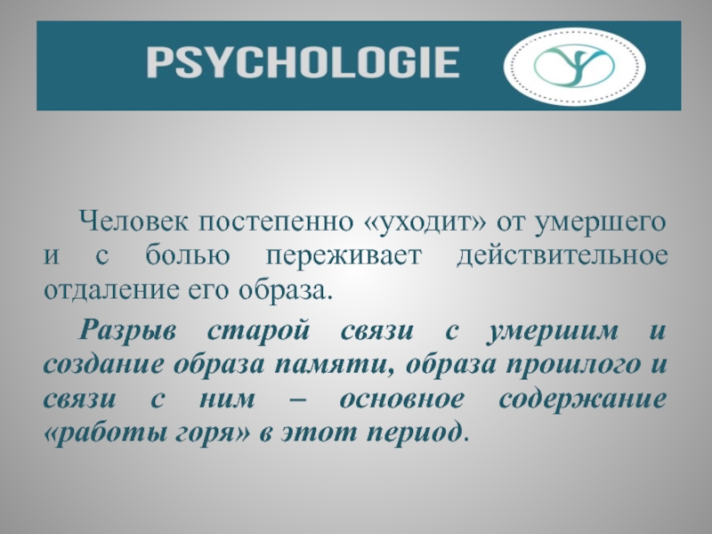 Слайд 43 Человек постепенно «уходит» от умершего и с болью переживает действительное