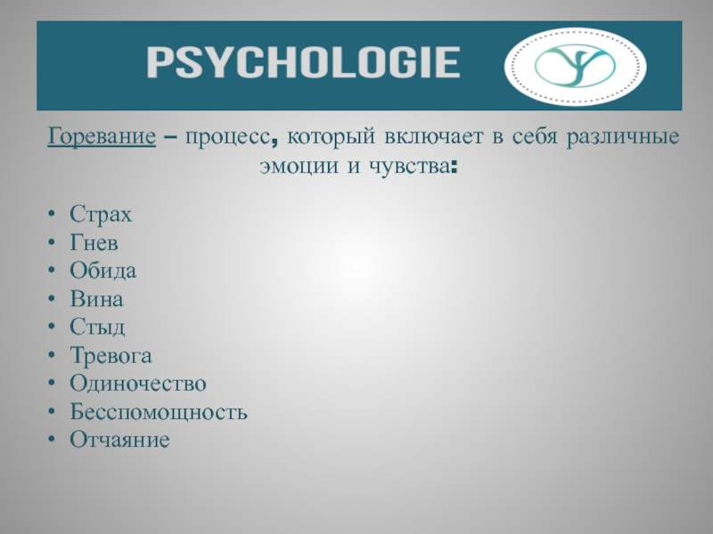 Слайд 5Горевание – процесс, который включает в себя различные эмоции и