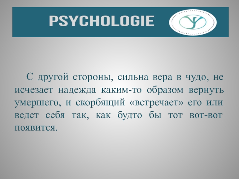 отрицанием безвозвратности утраты. Человеку, понесшему утрату, часто кажется, что он