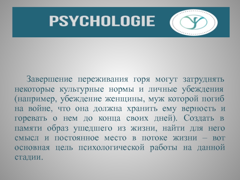 Слайд 49 Завершение переживания горя могут затруднять некоторые культурные нормы и личные