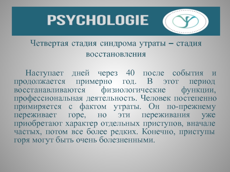 Слайд 46Четвертая стадия синдрома утраты – стадия восстановления