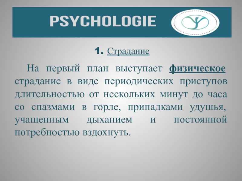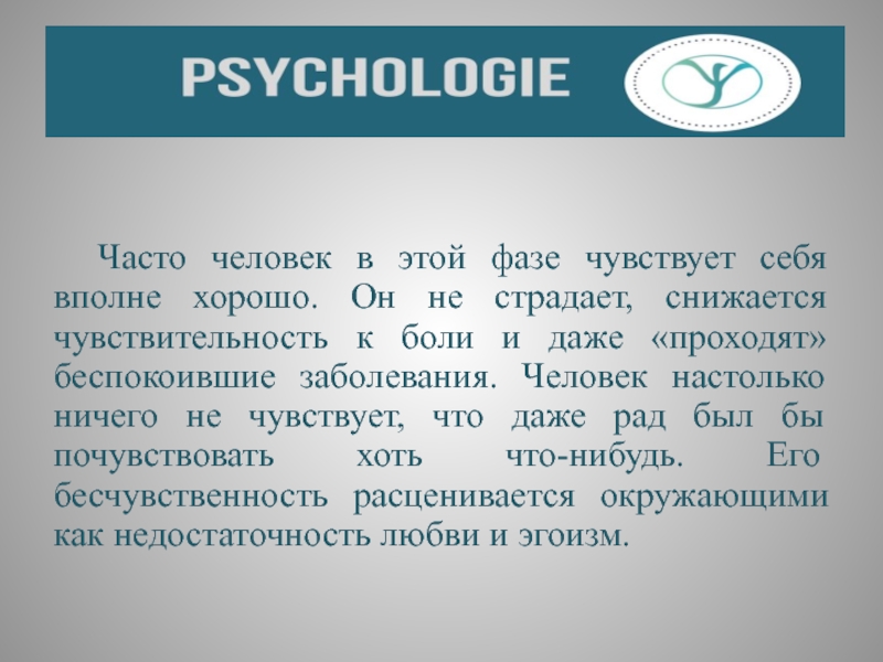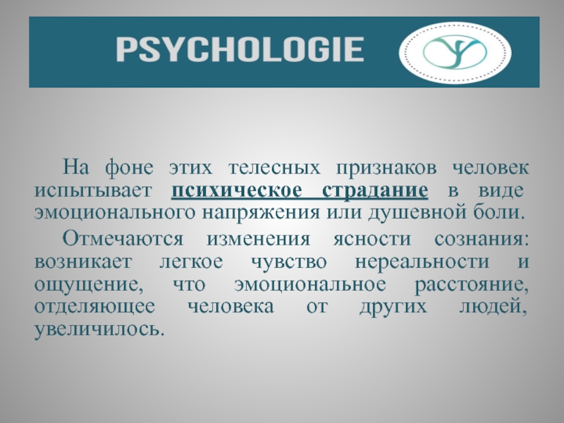 Слайд 12 На фоне этих телесных признаков человек испытывает психическое страдание в