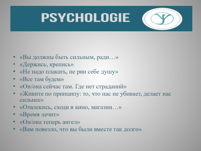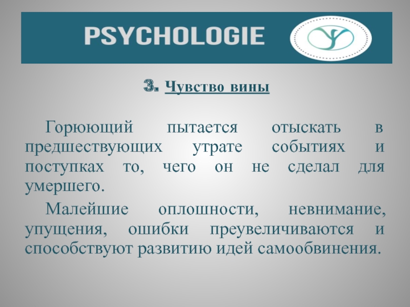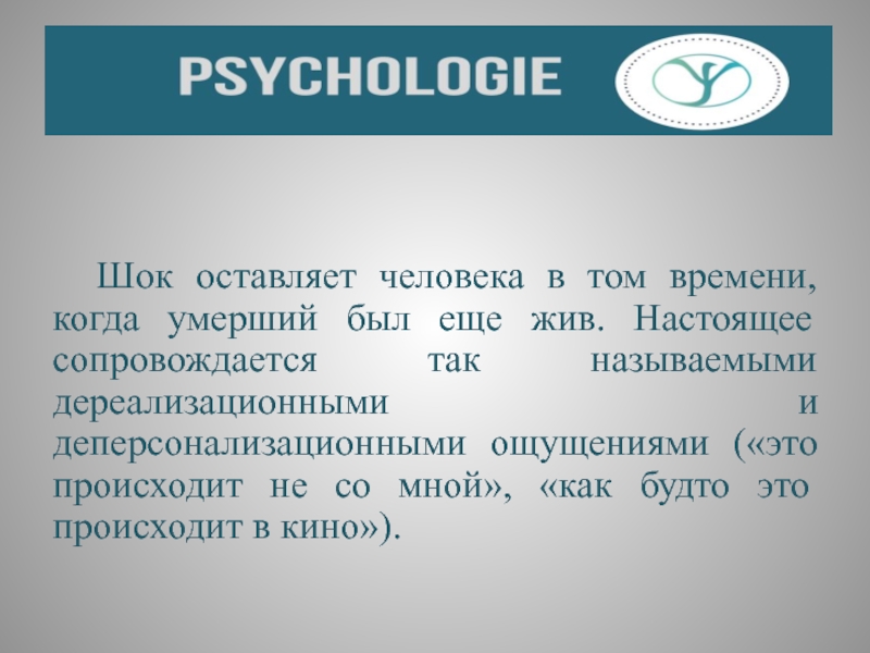 Слайд 30 Шок оставляет человека в том времени, когда умерший был еще