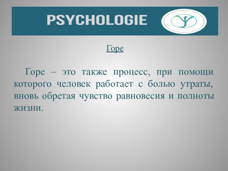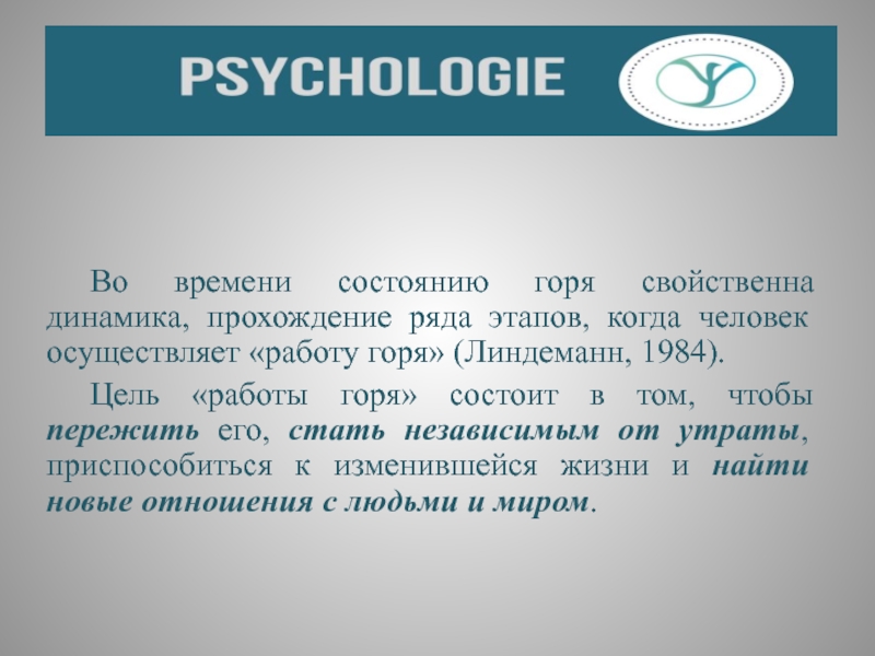 Слайд 19 Во времени состоянию горя свойственна динамика, прохождение ряда этапов, когда
