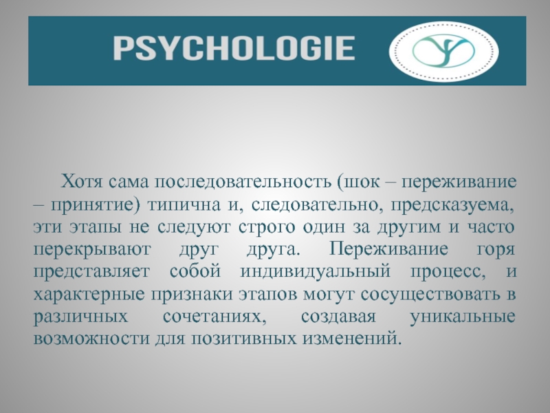 Слайд 50 Хотя сама последовательность (шок – переживание – принятие) типична и,