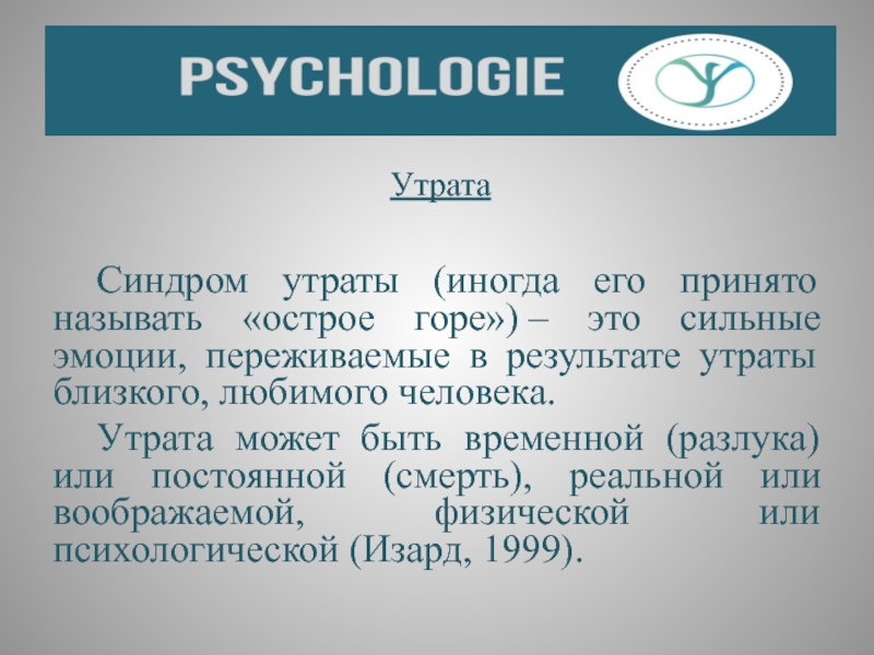 быть временной (разлука) или постоянной (смерть), реальной или воображаемой, физической или психологической (Изард, 1999).