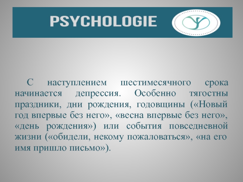 Слайд 45 С наступлением шестимесячного срока начинается депрессия. Особенно тягостны праздники, дни