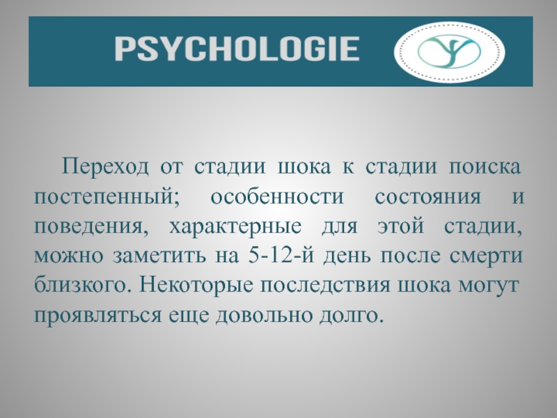 Слайд 36 Переход от стадии шока к стадии поиска постепенный; особенности состояния