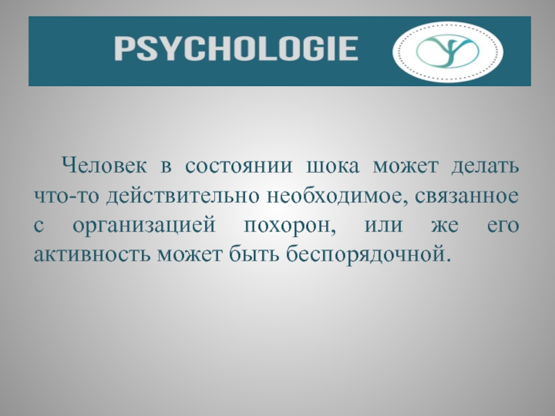 Слайд 24 Человек в состоянии шока может делать что-то действительно необходимое, связанное