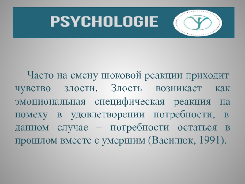 Слайд 32 Часто на смену шоковой реакции приходит чувство злости. Злость возникает