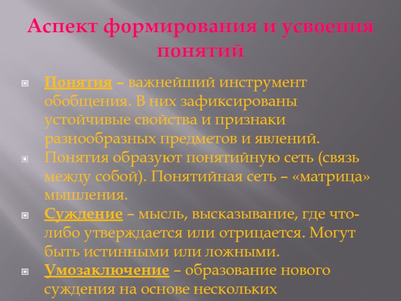 Понятия образуют понятийную сеть (связь между собой). Понятийная сеть – «матрица» мышления.