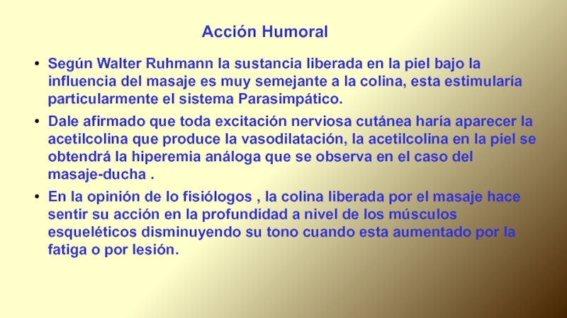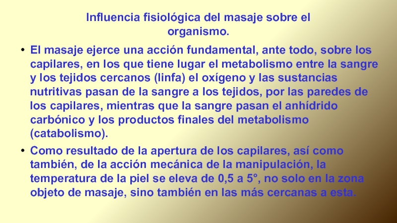 Слайд 47El masaje ejerce una acción fundamental, ante todo, sobre los