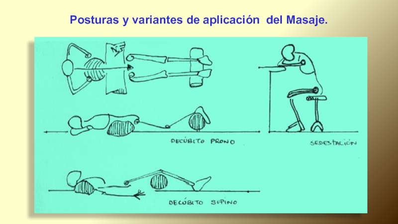 Слайд 60Posturas y variantes de aplicación del Masaje.
