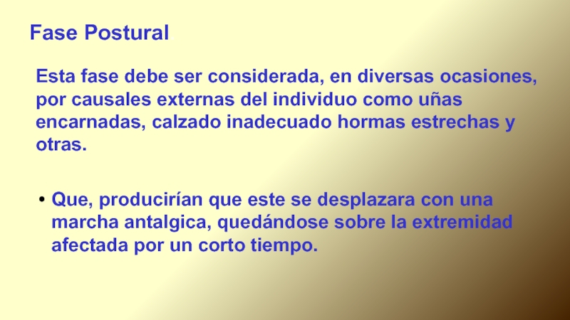 Debemos tener presente que existe dos fases del ciclo de la marcha uno será el del apoyo plantar, el otro será la oscilación cuando va hacia delante.