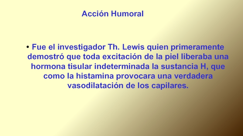 excitación de la piel liberaba una hormona tisular indeterminada la sustancia H, que como la histamina provocara una verdadera vasodilatación de los capilares.