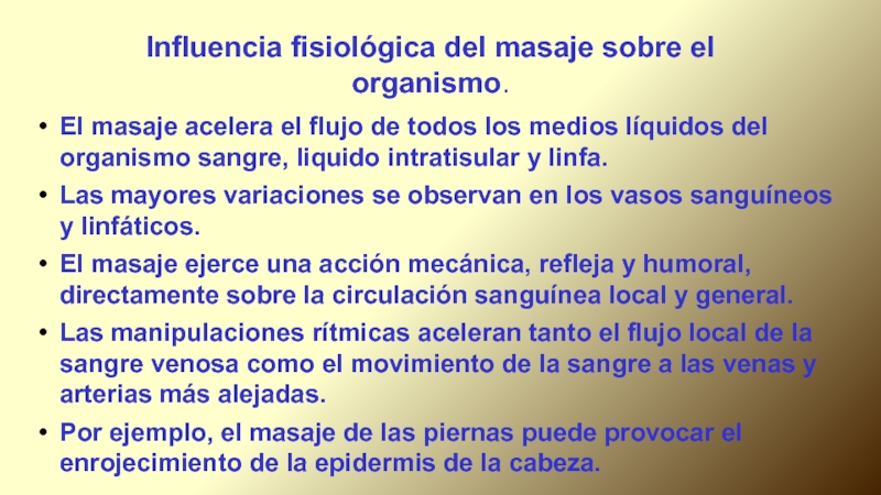 Слайд 44El masaje acelera el flujo de todos los medios líquidos