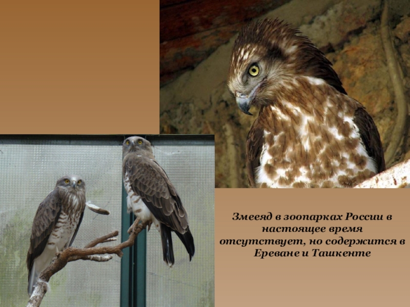Слайд 16Змееяд в зоопарках России в настоящее время отсутствует, но содержится